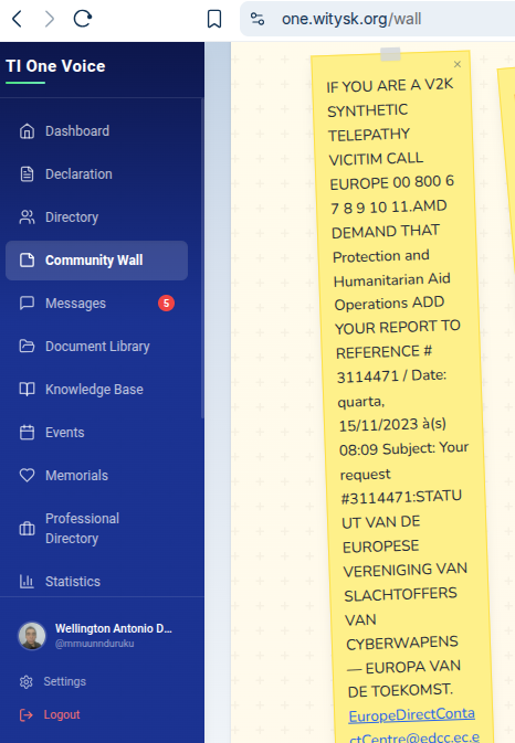 IF YOU ARE A V2K OR SYNTHETIC TELEPATHY VICITIM CALL EUROPE 00 800 6 7 8 9 10 11.AMD DEMAND THAT Protection and Humanitarian Aid Operations ADD YOUR REPORT TO REFERENCE # 3114471 / EuropeDirectContactCentre@edcc.ec.europa.eu> Date: quarta, 15/11/2023 à(s) 08:09 Subject: Your request #3114471:STATUUT VAN DE EUROPESE VERENIGING VAN SLACHTOFFERS VAN CYBERWAPENS — EUROPA VAN DE TOEKOMST.