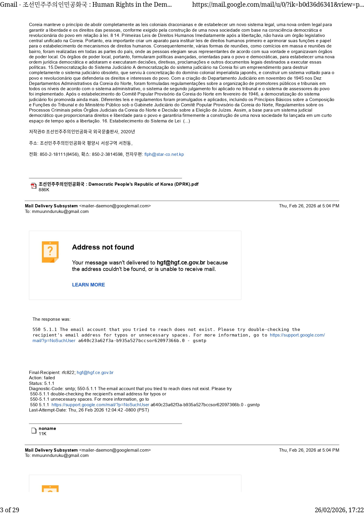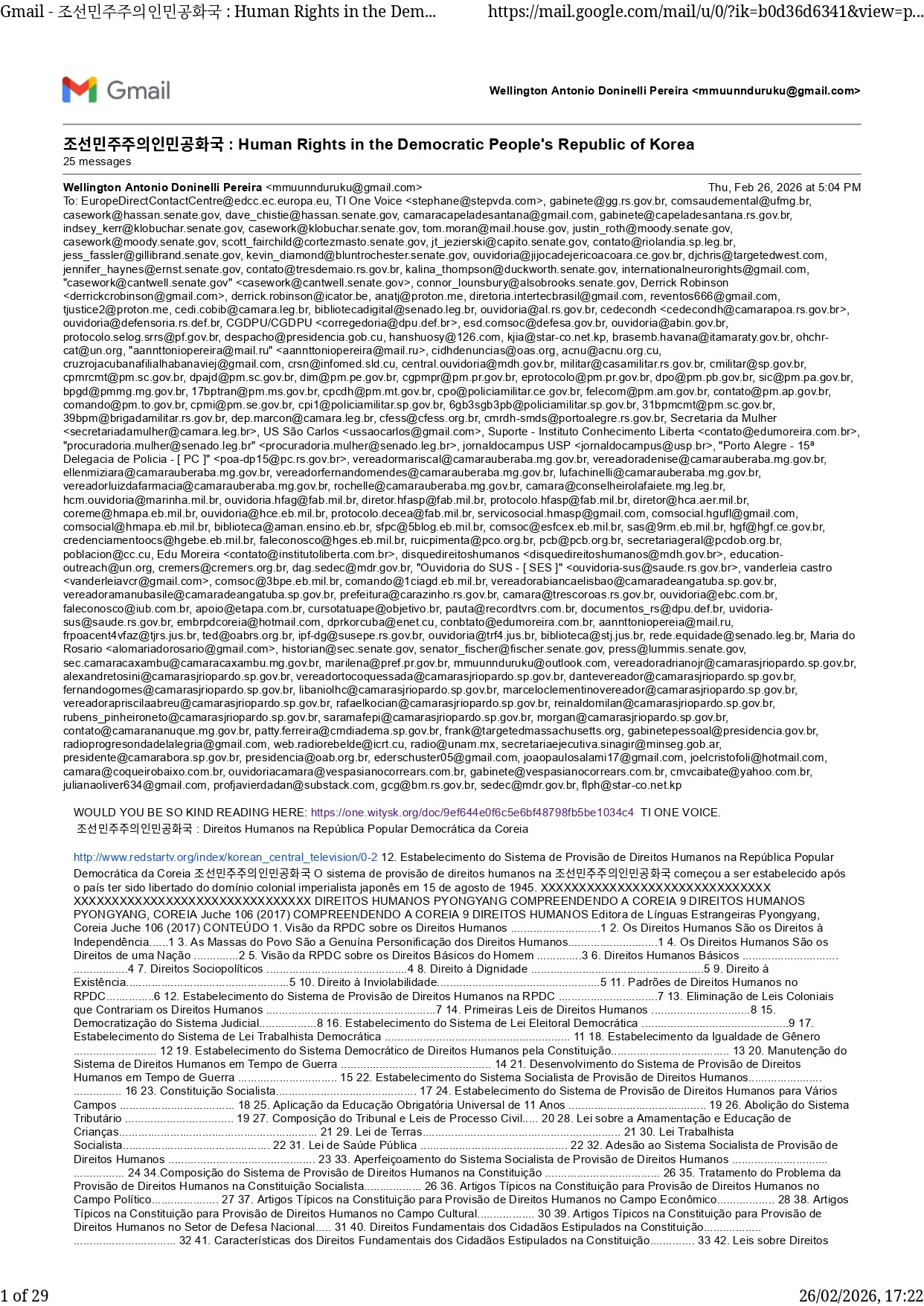 To: .EuropeDirectContactCentre@edcc.ec.europa.eu>, TI One Voice .stephane@stepvda.com>, .gabinete@gg.rs.gov.br>, .comsaudemental@ufmg.br>, .casework@hassan.senate.gov>, .dave_chistie@hassan.senate.gov>, .camaracapeladesantana@gmail.com>, .gabinete@capeladesantana.rs.gov.br>, .indsey_kerr@klobuchar.senate.gov>, .casework@klobuchar.senate.gov>, .tom.moran@mail.house.gov>, .justin_roth@moody.senate.gov>, .casework@moody.senate.gov>, .scott_fairchild@cortezmasto.senate.gov>, .jt_jezierski@capito.senate.gov>, .contato@riolandia.sp.leg.br>, .jess_fassler@gillibrand.senate.gov>, .kevin_diamond@bluntrochester.senate.gov>, .ouvidoria@jijocadejericoacoara.ce.gov.br>, .djchris@targetedwest.com>, .jennifer_haynes@ernst.senate.gov>, .contato@tresdemaio.rs.gov.br>, .kalina_thompson@duckworth.senate.gov>, .internationalneurorights@gmail.com>, casework@cantwell.senate.gov .casework@cantwell.senate.gov>, .connor_lounsbury@alsobrooks.senate.gov>, Derrick Robinson .derrickcrobinson@gmail.com>, .derrick.robinson@icator.be>, .anatj@proton.me>, .diretoria.intertecbrasil@gmail.com>, .reventos666@gmail.com>, .tjustice2@proton.me>, .cedi.cobib@camara.leg.br>, .bibliotecadigital@senado.leg.br>, .ouvidoria@al.rs.gov.br>, cedecondh .cedecondh@camarapoa.rs.gov.br>, .ouvidoria@defensoria.rs.def.br>, CGDPU/CGDPU .corregedoria@dpu.def.br>, .esd.comsoc@defesa.gov.br>, .ouvidoria@abin.gov.br>, .protocolo.selog.srrs@pf.gov.br>, .despacho@presidencia.gob.cu>, .hanshuosy@126.com>, .kjia@star-co.net.kp>, .brasemb.havana@itamaraty.gov.br>, .ohchr-cat@un.org>, aannttoniopereira@mail.ru .aannttoniopereira@mail.ru>, .cidhdenuncias@oas.org>, .acnu@acnu.org.cu>, .cruzrojacubanafilialhabanaviej@gmail.com>, .crsn@infomed.sld.cu>, .central.ouvidoria@mdh.gov.br>, .militar@casamilitar.rs.gov.br>, .cmilitar@sp.gov.br>, .cpmrcmt@pm.sc.gov.br>, .dpajd@pm.sc.gov.br>, .dim@pm.pe.gov.br>, .cgpmpr@pm.pr.gov.br>, .eprotocolo@pm.pr.gov.br>, .dpo@pm.pb.gov.br>, .sic@pm.pa.gov.br>, .bpgd@pmmg.mg.gov.br>, .17bptran@pm.ms.gov.br>, .cpcdh@pm.mt.gov.br>, .cpo@policiamilitar.ce.gov.br>, .felecom@pm.am.gov.br>, .contato@pm.ap.gov.br>, .comando@pm.to.gov.br>, .cpmi@pm.se.gov.br>, .cpi1@policiamilitar.sp.gov.br>, .6gb3sgb3pb@policiamilitar.sp.gov.br>, .31bpmcmt@pm.sc.gov.br>, .39bpm@brigadamilitar.rs.gov.br>, .dep.marcon@camara.leg.br>, .cfess@cfess.org.br>, .cmrdh-smds@portoalegre.rs.gov.br>, Secretaria da Mulher .secretariadamulher@camara.leg.br>, US São Carlos .ussaocarlos@gmail.com>, Suporte - Instituto Conhecimento Liberta .contato@edumoreira.com.br>, procuradoria.mulher@senado.leg.br .procuradoria.mulher@senado.leg.br>, jornaldocampus USP .jornaldocampus@usp.br>, Porto Alegre - 15ª Delegacia de Policia - [ PC ] .poa-dp15@pc.rs.gov.br>, .vereadormariscal@camarauberaba.mg.gov.br>, .vereadoradenise@camarauberaba.mg.gov.br>, .ellenmiziara@camarauberaba.mg.gov.br>, .vereadorfernandomendes@camarauberaba.mg.gov.br>, .lufachinelli@camarauberaba.mg.gov.br>, .vereadorluizdafarmacia@camarauberaba.mg.gov.br>, .rochelle@camarauberaba.mg.gov.br>, .camara@conselheirolafaiete.mg.leg.br>, .hcm.ouvidoria@marinha.mil.br>, .ouvidoria.hfag@fab.mil.br>, .diretor.hfasp@fab.mil.br>, .protocolo.hfasp@fab.mil.br>, .diretor@hca.aer.mil.br>, .coreme@hmapa.eb.mil.br>, .ouvidoria@hce.eb.mil.br>, .protocolo.decea@fab.mil.br>, .servicosocial.hmasp@gmail.com>, .comsocial.hgufl@gmail.com>, .comsocial@hmapa.eb.mil.br>, .biblioteca@aman.ensino.eb.br>, .sfpc@5blog.eb.mil.br>, .comsoc@esfcex.eb.mil.br>, .sas@9rm.eb.mil.br>, .hgf@hgf.ce.gov.br>, .credenciamentoocs@hgebe.eb.mil.br>, .faleconosco@hges.eb.mil.br>, .ruicpimenta@pco.org.br>, .pcb@pcb.org.br>, .secretariageral@pcdob.org.br>, .poblacion@cc.cu>, Edu Moreira .contato@institutoliberta.com.br>, disquedireitoshumanos .disquedireitoshumanos@mdh.gov.br>, .education-outreach@un.org>, .cremers@cremers.org.br>, .dag.sedec@mdr.gov.br>, Ouvidoria do SUS - [ SES ] .ouvidoria-sus@saude.rs.gov.br>, vanderleia castro .vanderleiavcr@gmail.com>, .comsoc@3bpe.eb.mil.br>, .comando@1ciagd.eb.mil.br>, .vereadorabiancaelisbao@camaradeangatuba.sp.gov.br>, .vereadoramanubasile@camaradeangatuba.sp.gov.br>, .prefeitura@carazinho.rs.gov.br>, .camara@trescoroas.rs.gov.br>, .ouvidoria@ebc.com.br>, .faleconosco@iub.com.br>, .apoio@etapa.com.br>, .cursotatuape@objetivo.br>, .pauta@recordtvrs.com.br>, .documentos_rs@dpu.def.br>, .uvidoria-sus@saude.rs.gov.br>, .embrpdcoreia@hotmail.com>, .dprkorcuba@enet.cu>, .conbtato@edumoreira.com.br>, .aannttoniopereia@mail.ru>, .frpoacent4vfaz@tjrs.jus.br>, .ted@oabrs.org.br>, .ipf-dg@susepe.rs.gov.br>, .ouvidoria@trf4.jus.br>, .biblioteca@stj.jus.br>, .rede.equidade@senado.leg.br>, Maria do Rosario .alomariadorosario@gmail.com>, .historian@sec.senate.gov>, .senator_fischer@fischer.senate.gov>, .press@lummis.senate.gov>, .sec.camaracaxambu@camaracaxambu.mg.gov.br>, .marilena@pref.pr.gov.br>, .mmuunnduruku@outlook.com>, .vereadoradrianojr@camarasjriopardo.sp.gov.br>, .alexandretosini@camarasjriopardo.sp.gov.br>, .vereadortocoquessada@camarasjriopardo.sp.gov.br>, .dantevereador@camarasjriopardo.sp.gov.br>, .fernandogomes@camarasjriopardo.sp.gov.br>, .libaniolhc@camarasjriopardo.sp.gov.br>, .marceloclementinovereador@camarasjriopardo.sp.gov.br>, .vereadorapriscilaabreu@camarasjriopardo.sp.gov.br>, .rafaelkocian@camarasjriopardo.sp.gov.br>, .reinaldomilan@camarasjriopardo.sp.gov.br>, .rubens_pinheironeto@camarasjriopardo.sp.gov.br>, .saramafepi@camarasjriopardo.sp.gov.br>, .morgan@camarasjriopardo.sp.gov.br>, .contato@camarananuque.mg.gov.br>, .patty.ferreira@cmdiadema.sp.gov.br>, .frank@targetedmassachusetts.org>, .gabinetepessoal@presidencia.gov.br>, .radioprogresondadelalegria@gmail.com>, .web.radiorebelde@icrt.cu>, .radio@unam.mx>, .secretariaejecutiva.sinagir@minseg.gob.ar>, .presidente@camarabora.sp.gov.br>, .presidencia@oab.org.br>, .ederschuster05@gmail.com>, .joaopaulosalami17@gmail.com>, .joelcristofoli@hotmail.com>, .camara@coqueirobaixo.com.br>, .ouvidoriacamara@vespasianocorrears.com.br>, .gabinete@vespasianoc