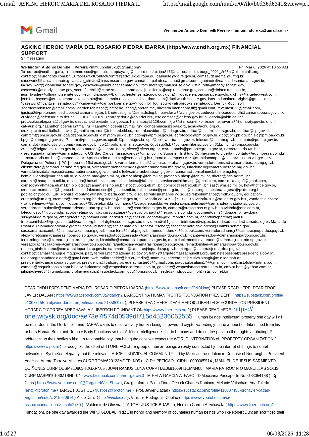 DEAR CNDH PRESIDENT MARÍA DEL ROSARIO PIEDRA IBARRA (https://www.facebook.com/CNDHmx),PLEASE READ HERE: DEAR PROF. JAVIER DADAN ( https://www.facebook.com/Javidadan2 ), ARGENTINA HUMAN RIGHTS FOUNDATION PRESIDENT ( https://substack.com/profile/410037455-profjavier-dadan-argentina/note/c-215580974 ), PLEASE READ HERE: DEAR HEROIC LIBERTECH FOUNDATION PRESIDENT HORARCIO CORREA ARECHAVALA ( LIBERTCH FOUNDANTION https://www.liber-tech.org/ ) PLEASE READ HERE: https://one.witysk.org/doc/ae73e7f574d0539df715d45236062555