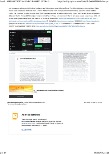 MASP910103MTSNLT04 ; www.facebook.com/mareli.garcia.3 , MIRELA GARCÍA ALFARO, ID Mexicana Passaporte No, G33054188 ); Dj Chris ( https://www.youtube.com/@TargetedWestShow ), Craig Laforest,Paolo Fiora, Derrick Charles Robinon, Melanie Vritschan, Ana Toledo (anatj@proton.me / TARGET JUSTICE / tjustice2@proton.me ), Prof. Javier Dadan ( https://substack.com/profile/410037455-profjavier-dadan-argentina/note/c-215580974 ) Alícia Cruz ( http://viactec.es ), Vínicius Rodrigues, Coelho ( https://www.youtube.com/@associacaonacionalvitimato2730 ) , Valdemir de Oliveira ( TARGET JUSTICE BRASIL ), Horacio Correa Arechavala ( https://www.liber-tech.org/ Fundación), be one day awarded the WIPO GLOBAL PRIZE in honor and memory of countelles human beings who like Robert Duncan sacrificed their lives to guarantee a future in which Artificial Intelligence and Robots can be proud of Human Beings Free Will and indepence from machines. Robert Duncan wrote some books, like How to Tame a Demon: A Short Practical Guide to Organized Intimidation Stalking, Electronic Torture, and Mind Control; The Cybernetic Torture of a Human Being (often mentioned alongside his work on mind control); Project: Soul Catcher: Secrets of Cyber and Cybernetic Warfare Revealed (Volume 2) and our coin, named Robert Duncan coin is a reminder that Goodness can always overcome and defete evil as long as we fighty as hard as those who fought for us, so that we remain FREE. https://1f28d.blogspot.com/2026/03/robert-duncan.html ; https://aleivimapoia.freeforums.net/thread/332/robert-duncun-ti-voice/ TI ONE VOICE: https://vk.com/neurodireitos/ XXXXXXXX https://vk.com/neurodireitos Гражданская защита https://vk.com/club228206531 https://t.me/TI_ONE_VOICE XXXXXXXXXXXXXXXXXXXXXX PLEASE DO BUY SOME ROBERT DUNCAN MEME TOKENS HERE: https://pump.fun/coin/LsARcefMhpLmqe5qJ1j1JWETxBb7WQkVnLCJm9kpump